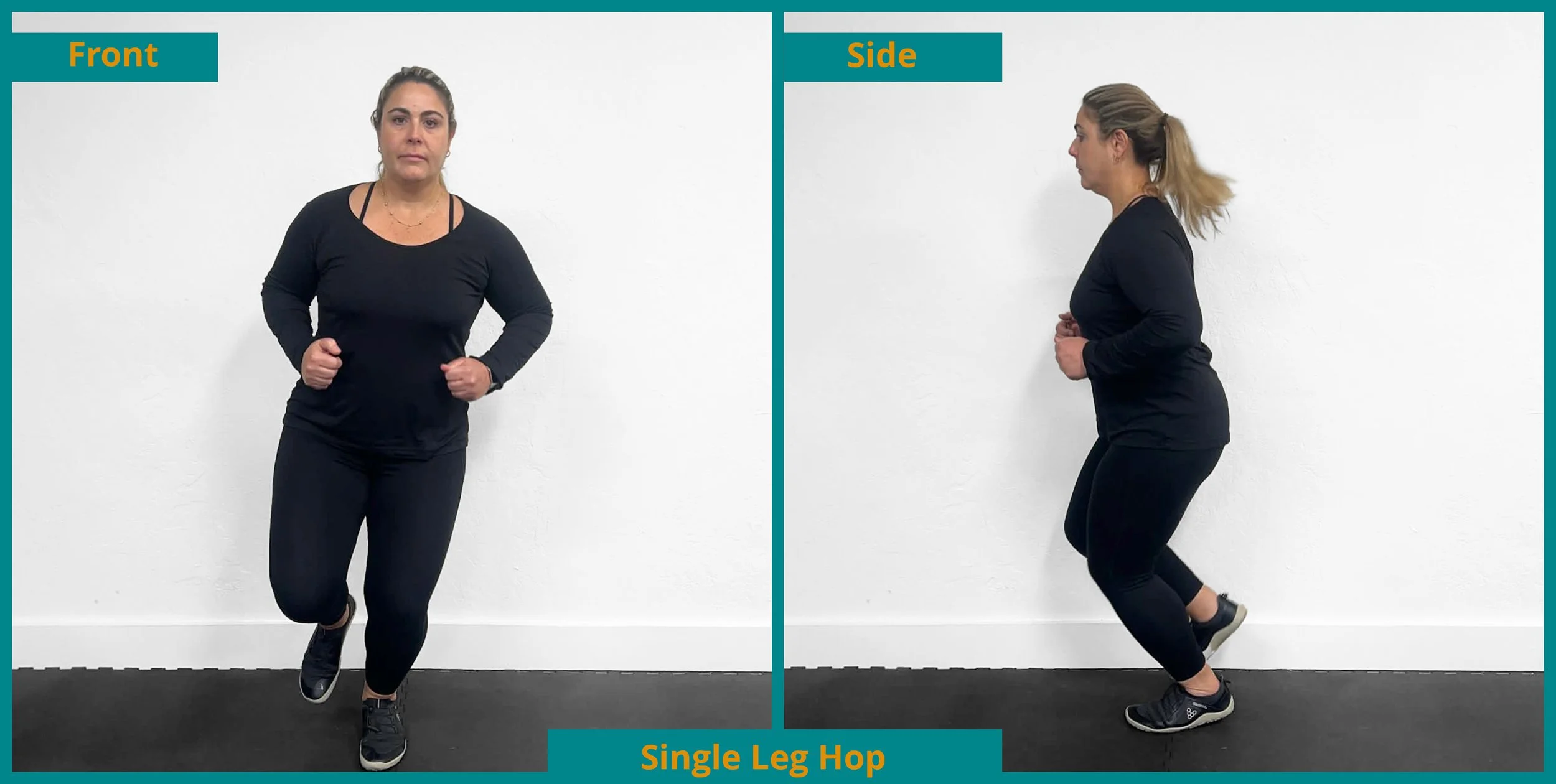 Overall motor planning: Try some single-leg hops on each side and make sure to pause for three seconds after each landing. Look at yourself from the front and the side. Just like with the double and single leg squats, your hips, knees, and ankles should move together. Land softly and with control, keep your knee from caving in, and aim for similar hop distances and good posture on both sides. The distance covered should be symmetrical side to side.